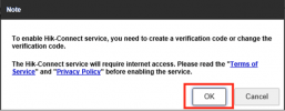 A popup should appear reminding you to read the service terms and privacy statement for using Hik-Connect. Once done, tick the box to indicate you have done so and then click OK.