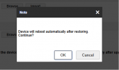 You will see a popup window asking you to confirm that you want to reset the device. Wait while it resets and reboots, the popup will disappear when this is done.