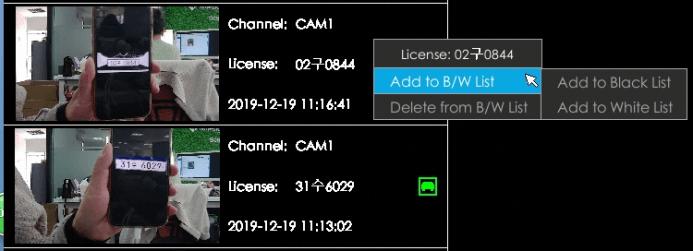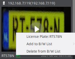 You can right click on the ANPR notification push window to pop up a menu, and choose to add the license plate to White or Black List in the VMS system. If the license plate has already existed in the White or Black List of VMS system, then you can choose to change its type or delete the license plate from White or Black List.