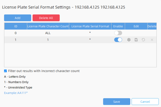 [License Plate Serial Format]: Formulate identification rules and automatically filter wrong license plates information to achieve more intelligent and accurate license plate recognition.