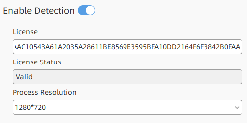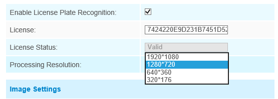 [Process Resolution]: Resolution of the stream for LPR analysis, including 1920*1280, 1280*720.