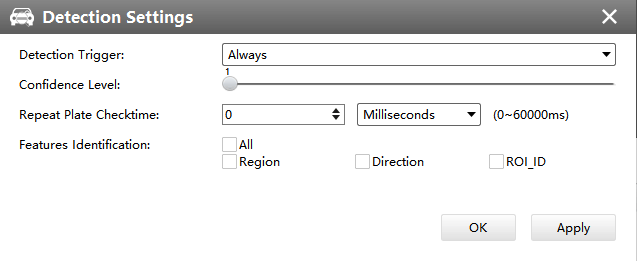 [Confidence Level]: You can set the confidence level from 1 to 10. When the confidence level of the license plate is higher than the set confidence level, it will push the license plate image to the logs interface..