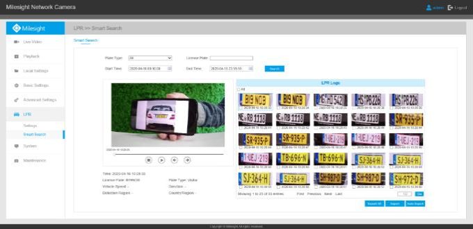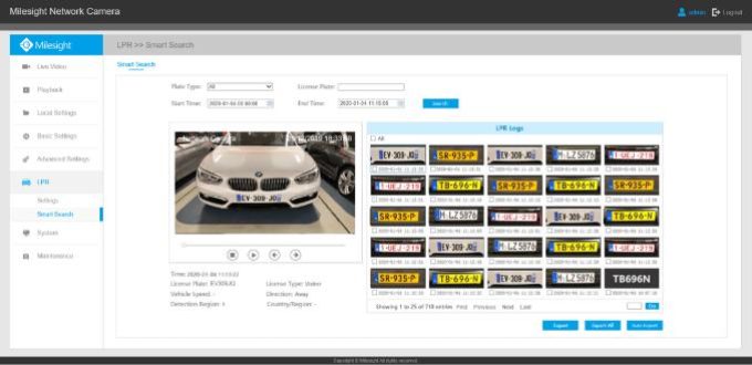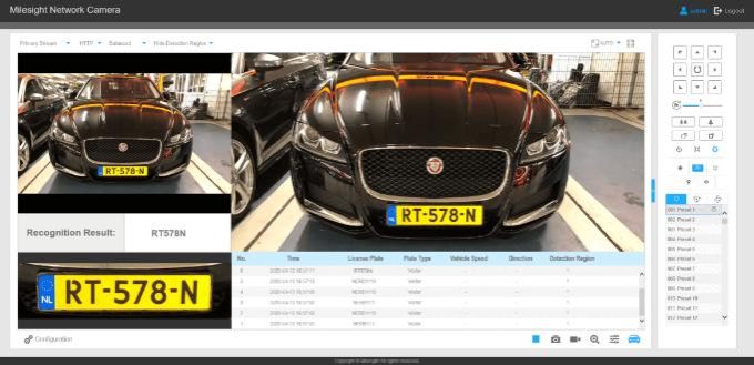 Milesight LPR camera supports professional LPR Live View interface. You can see the real-time license plate recognition results.