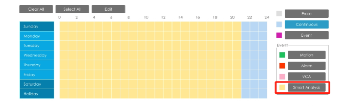 Step2: Schedule Settings. You can draw the schedule by clicking [Edit] button. And then click [Save] or [Reset] after finishing the setting.