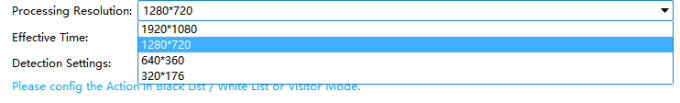 [Processing Resolution]: Default resolution selected is 1280*720. You can choose different resolution according to the network environment.