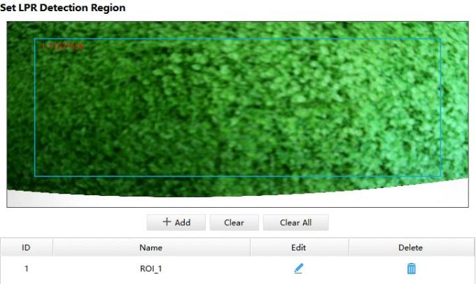 Step1: Go to “Advanced Settings” → “LPR” → “Settings” after log in the web. Check the checkbox “Enable License Plate Recognition”, and you can draw the screen to select the areas interested. There will be shown in the blue box as below.