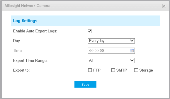 You can also click the “Auto Export” button to automatically export the logs to FTP, SMTP or Storage.