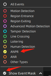 Step2: You can check Show Event Mask to select the ANPR event, then the ANPR event videos will be displayed in the corresponding color.