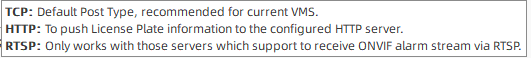 [Post Type]: Information can be pushed by RTSP, TCP or HTTP.