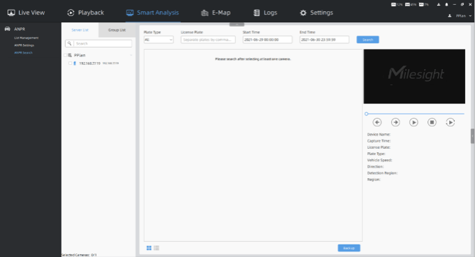 Step1: Check the cameras in the devices list tree, and select the plate type or directly enter the license plate number.
