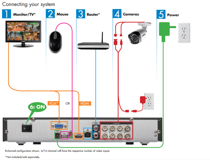 During setup, your DVR will go through a wizard. The most important thing you can do here is set up your username, which is ‘admin’ by default and must be a minimum of eight characters. The password must be a minimum of eight characters and include both letters and numbers. You will also be asked to set up a pattern login, in which you may create a ‘connect the dots’ pattern to use instead of typing your password. We recommend keeping a record of your password somewhere secure so that you may use the pattern. You will need that password to perform many functions.