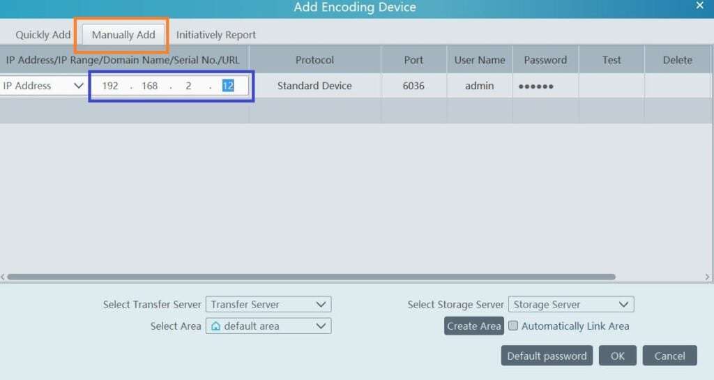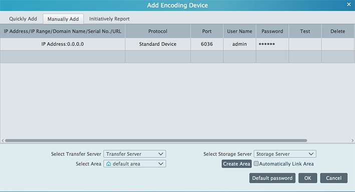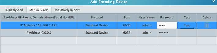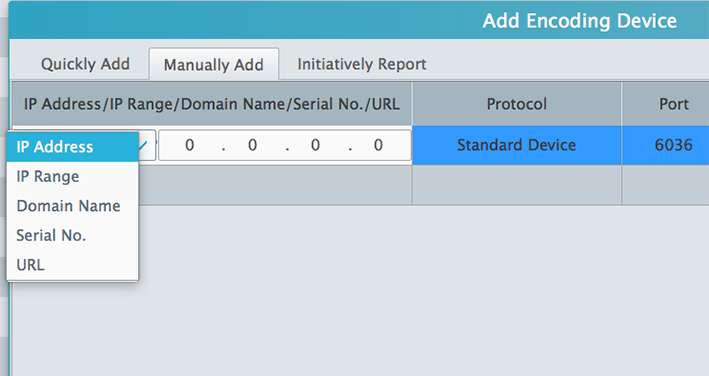 Click on the “manually add” option from the top of the screen. Here, you have to add a device serial number, IP address or a domain as per your mode of DVR/NVR’s registration.