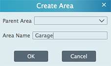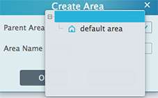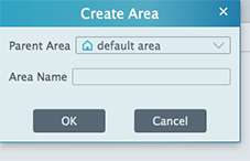 To create a new area click on the Parent Area drop down and choose the blank option, input the area name (this can be called anything you like) and then OK, if you do not change the parent area it will nest your new area under which ever area you have assigned as the parent.