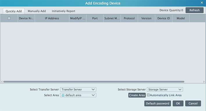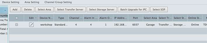 Also select the area (or group) you want to assign the cameras too, this is normally more important if you need to intergrate multiple DVRs and want to keep them in orderly sections. There is a default area as a standard general pool.