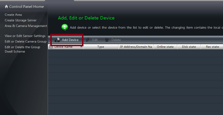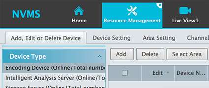 You will want to click on the resource management tab to then click the “Add, Edit or Delete” button to add the DVR to the software