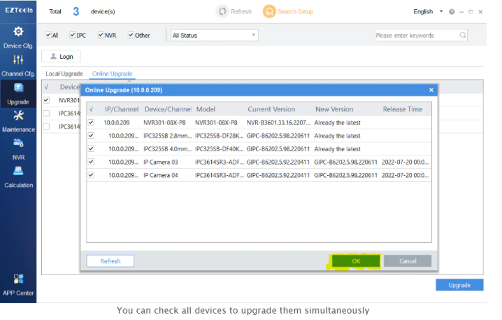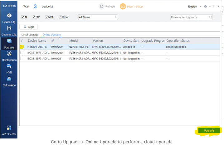 After installing EZTools 2.0, open the software and follow the steps below to update your Uniview cameras’ firmware: