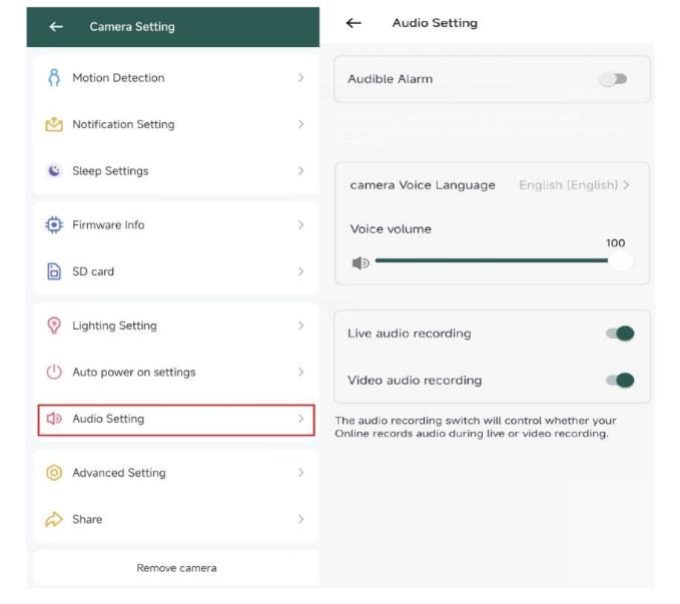 When motion is detected,the camera will Automatically sound an alert. (This function is not recommended for indoor use)