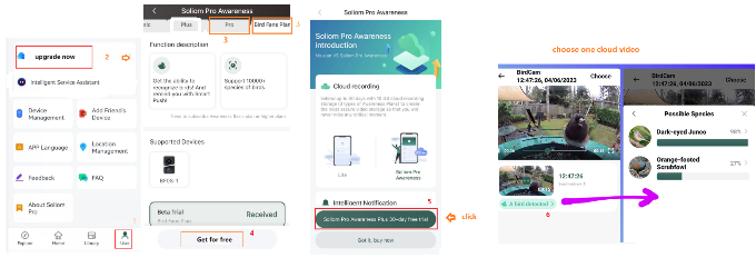We offer one month of free cloud service with AI recognition for all bird feeder cameras. After the trial period, continued access to our Bird AI recognition service requires a subscription.