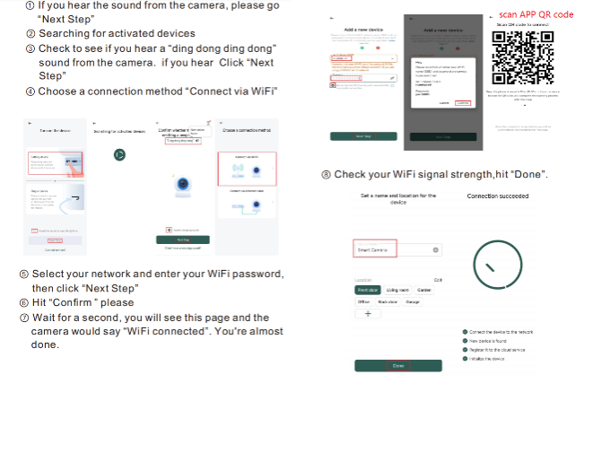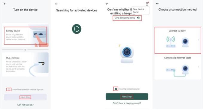 ③Check to see if you hear a “ding dong ding dong” sound from the camera. if you hear Click “Next Step”.