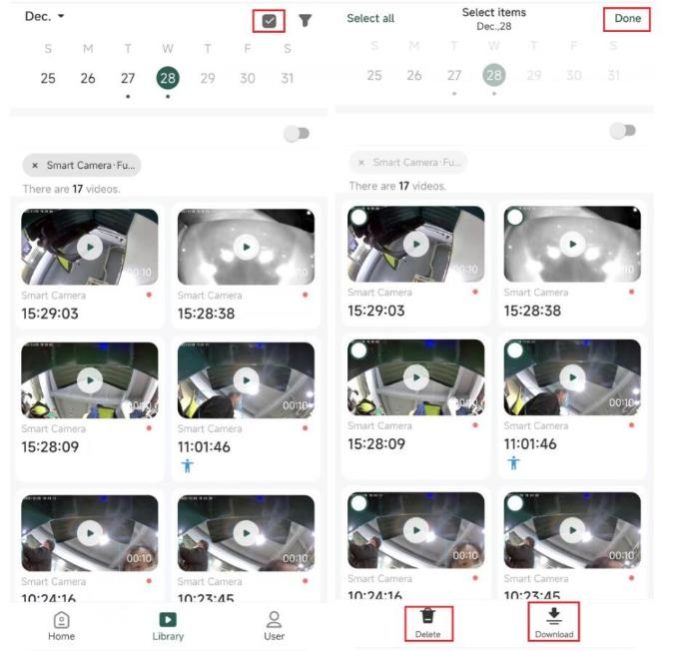 Delete or Download Videos:Click and choose videos that you want to delete or download, then click “Done”.