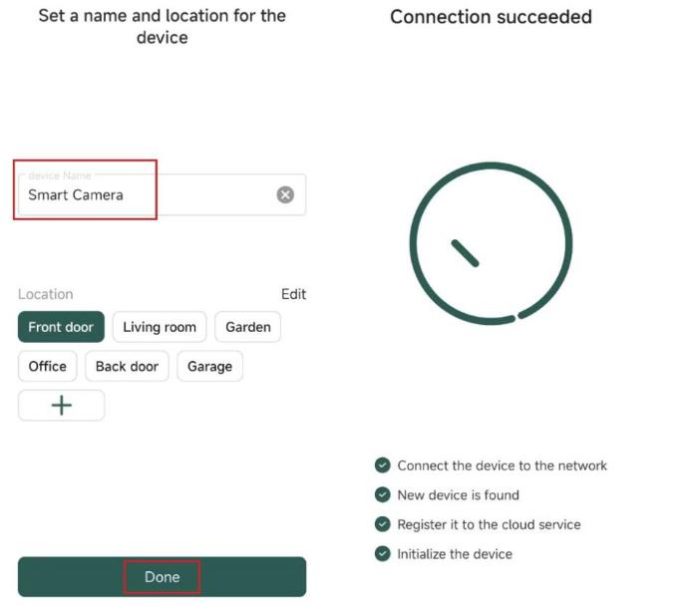 You have successfully connected your device to the app. Now you can set a password to log in,which can protect your privacy.The camera password should be longer than 8 characters, including numbers and letters. Please select “Non -Mainland China Users”.