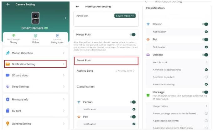 Smart Push: Select one or more AI objects, and you will receive notifications for the following events: “Something was detected.” Redundant information is filtered out to ensure notification effectiveness.