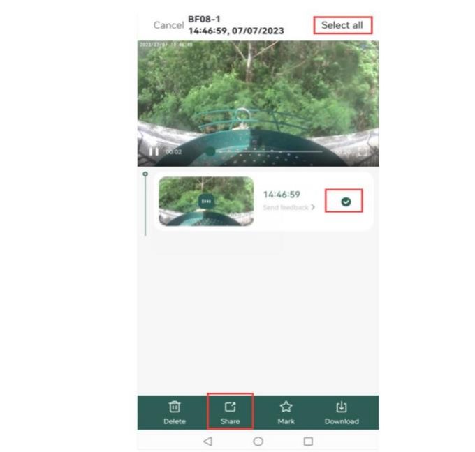 You can only check the motion triggered videos from the App, you can not share,delete or download the videos from the card.