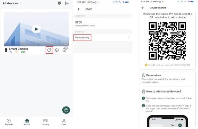 Soliom Pro app. Go to the settings icon>Share>Device Sharing, then you will see the QR code.