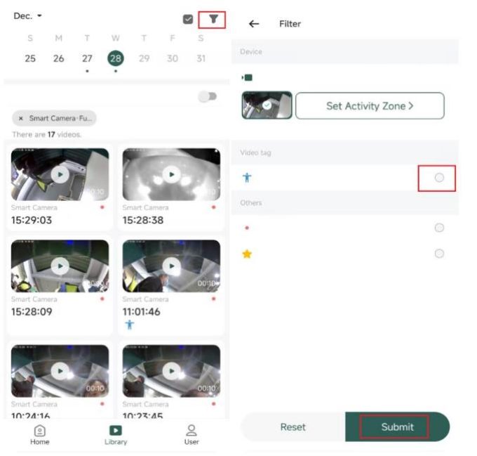 Filter Videos: You can choose the tag to filter the videos and click the“Submit”.