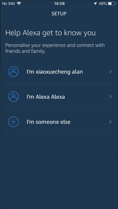 2. After log in, Alexa App will ask you to finish your personal settings. You can follow the guide to finish it.