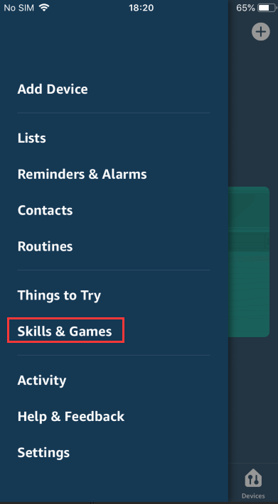 3. On the home page of Alexa App, please click menu and choose “Skills&Games”.Click search icon and search”Wansview Cloud”.