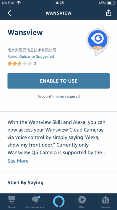 4. Click Wansview Cloud-choose “Enable to use”–log in your Wansview Cloud Account,then your account will be linked with Alexa.
