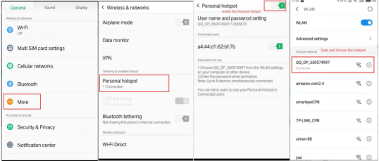 1. WiFi frequency please select 2.4Ghz WiFi if the mobile phone’s hotspot has both of 2.4G and 5G WiFi frequency.
