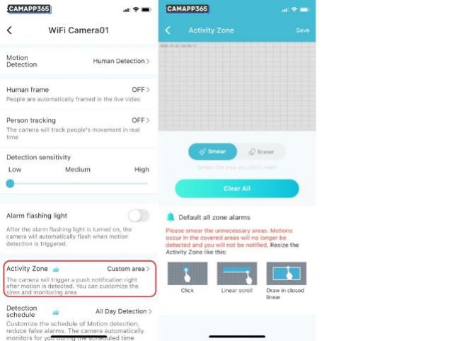 Setting the detection area allows the camera to detect a specific location, reducing the chance of false alarms.