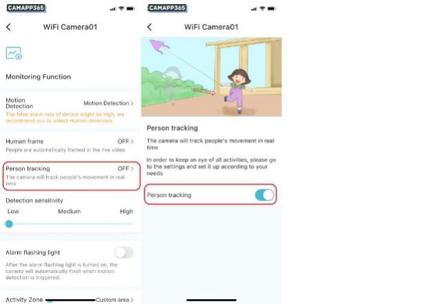 When the camera detects an object moving, it will send an alarm notification to your mobile phone.