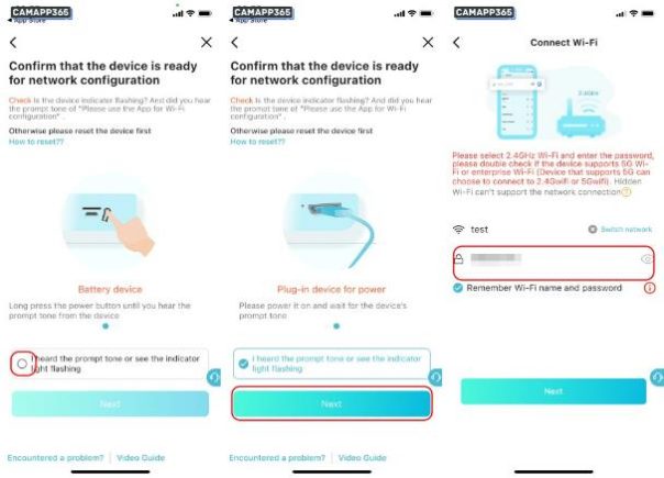 3. Make sure your O-KAM Pro camera is ready to connect, the camera light is flashing or you hear the prompt “Please use the app for Wi-Fi configuration”.