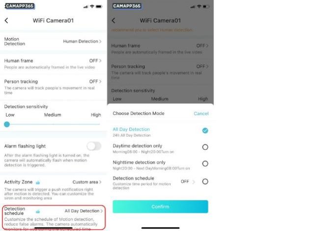 Customize the schedule of Motion detection, reduce false alarms. The camera automatically monitors for you during the scheduled time.