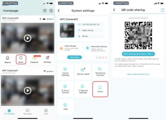 · The invited person must install the O-KAM Pro APP to scan the shared QR code to add a camera.