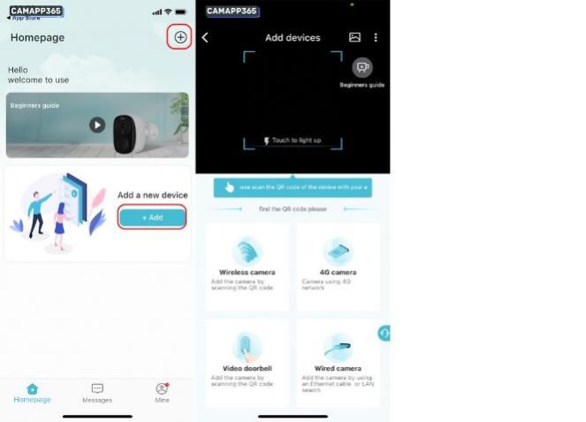 2. Have the invitee download the O-KAM Pro APP and register and login, then click + scan the QR code to add a camera.