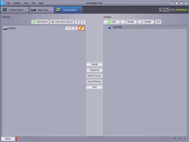 1. Open HomeSafe View and go to Control Panel.
