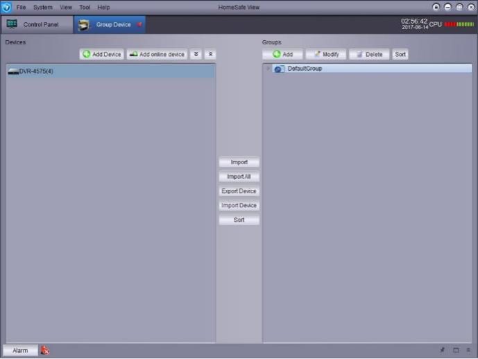 The DVR will now be listed at the left. Click on Import All to add all cameras to the right with the Group name of DefaultGroup. Should look something similar to this: