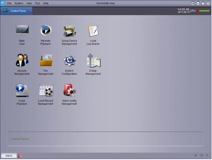 1. Open the HomeSafe View desktop app select Control Panel.