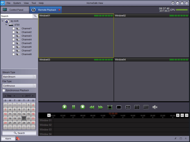 1. Open the HomeSafe View desktop app and navigate to Control Panel > Remote Playback. Note: If Control Panel is not available, click View > Control Panel at the top navigation menu.