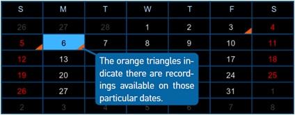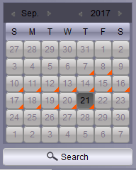 7. Click on Search to start searching recordings. Select a date that has an orange triangle in the bottom right corner. This means there are recordings on that date.