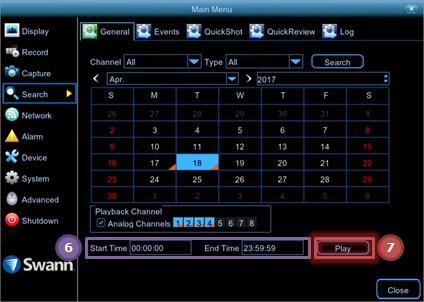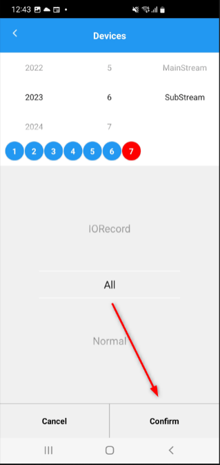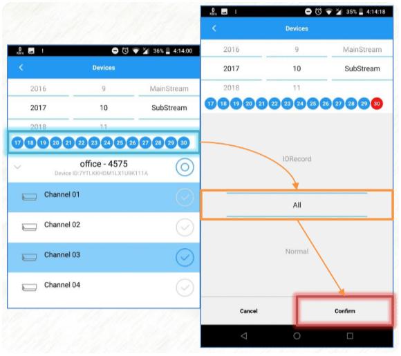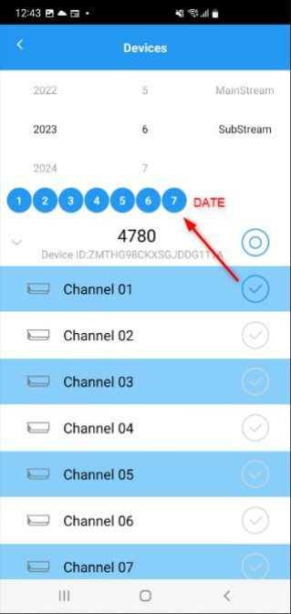 6. Select a specific date. Note: The app will only show the dates that has recordings based on the selected channel, month, and year.