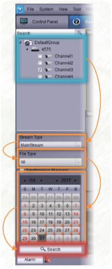 Next to it is the Playback Type followed by the list of channels that has footage on the selected date.