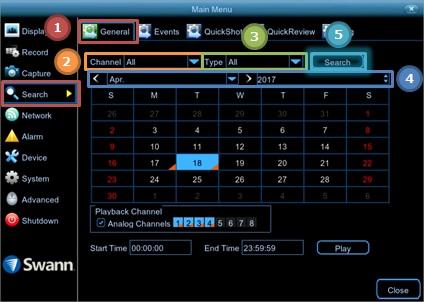 Select a specific date. These numbers are the specific date. It will only shows dates that has recording based on the channel, month, and year specified.