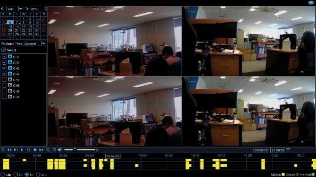 You will then arrive at the Playback interface. NB: Multiple channel playback may not be available if the recorder does not have enough spare resources.