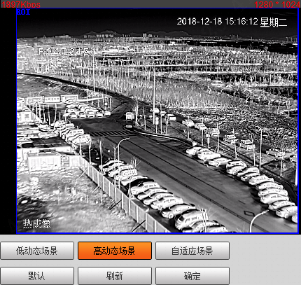 For outdoor environment, it is recommended to set a high dynamic scene. For indoor environment, it is recommended to set a low dynamic scene.