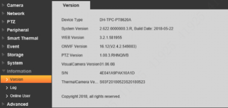 3. PTZ MCU program: 2.6.02.05.00249 General_TPC-SD8X20B-HN_MCU_V2.200.0000000.9.R.180915.zip